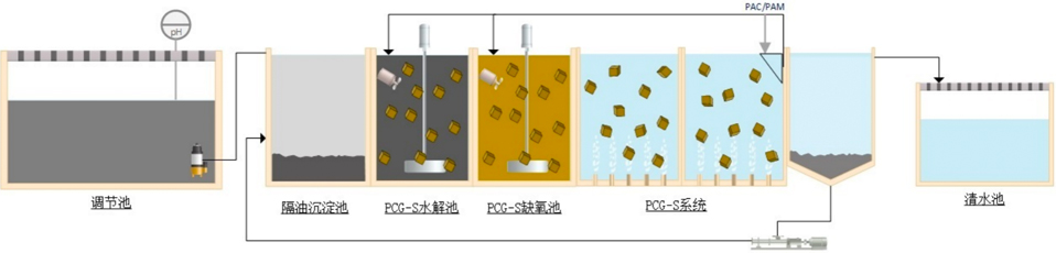 1,應用PCG-S型載體強化特定污染物質(zhì)的生化反應轉(zhuǎn)化及去除。